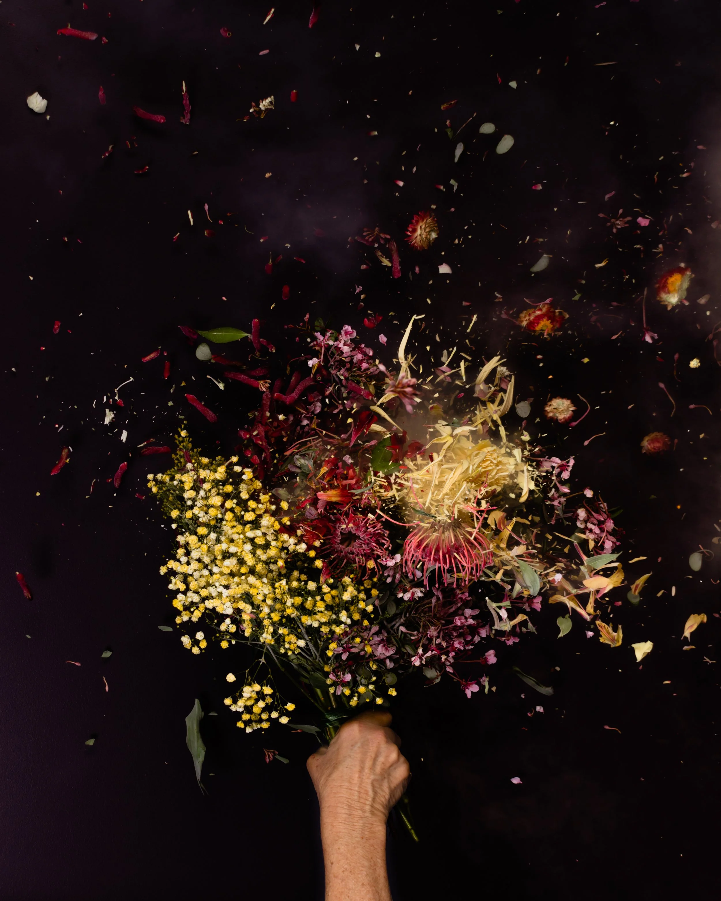 I decided to comment on the rise of digital image manipulation by combining a physically manipulated still life process with studio strobe lighting technologies to create images that look like they were made with digital manipulation.